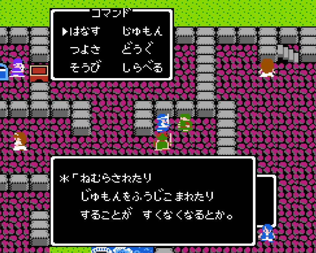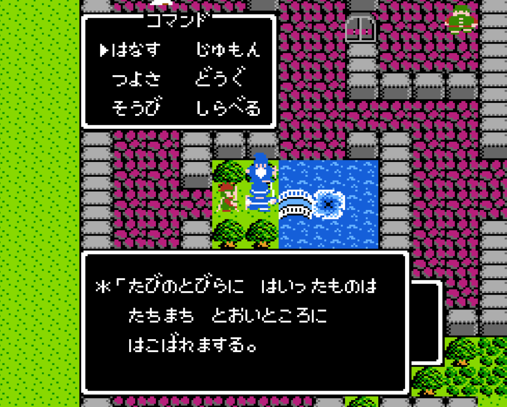 旅の扉。いま思えばこの演出は本当にすごい。物語の最初で子供たちに「このドラクエの世界は途方もなく広い」という冒険心とワクワク感を与えた。