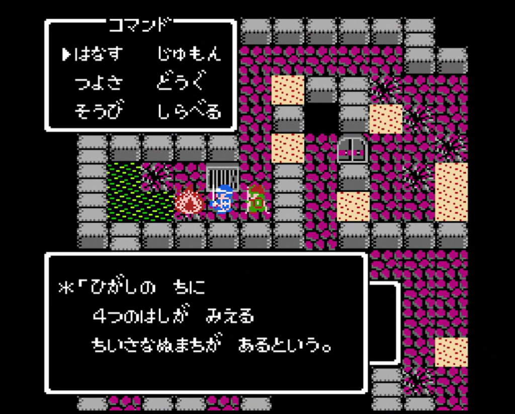 ラーの鏡に関する情報。ムーンブルクから東に行った場所に、4つの橋が見える小さな沼地にラーの鏡があるとのこと。