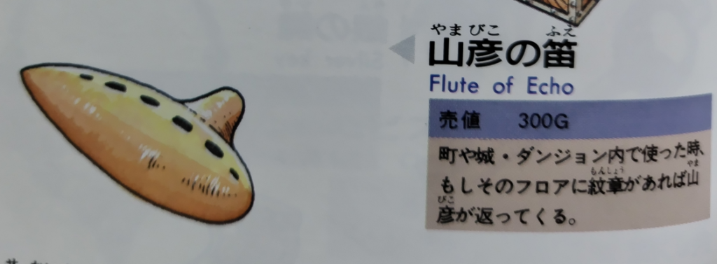 ちなみにやまびこの笛は捨てられる。捨てた場合、また男の会話はリセットされており、浅瀬で調べればまた財宝が手に入る。