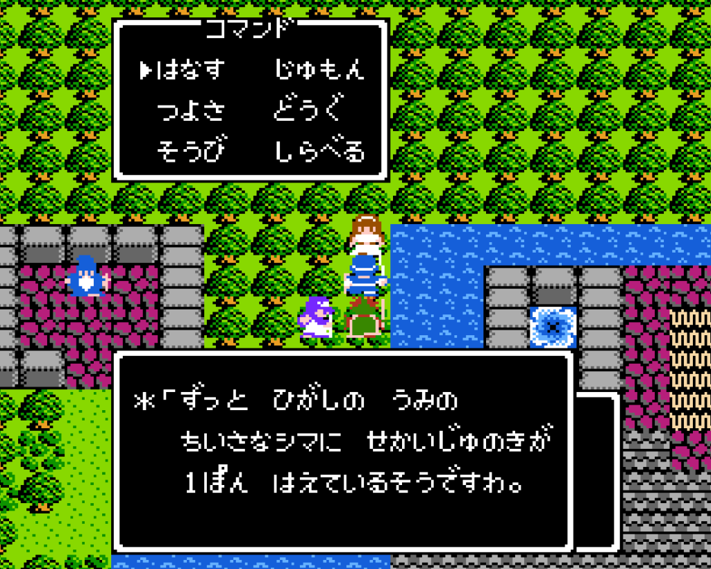 ベラヌールから東の海の小さな島に、せかいじゅのきが1本生えているらしい。