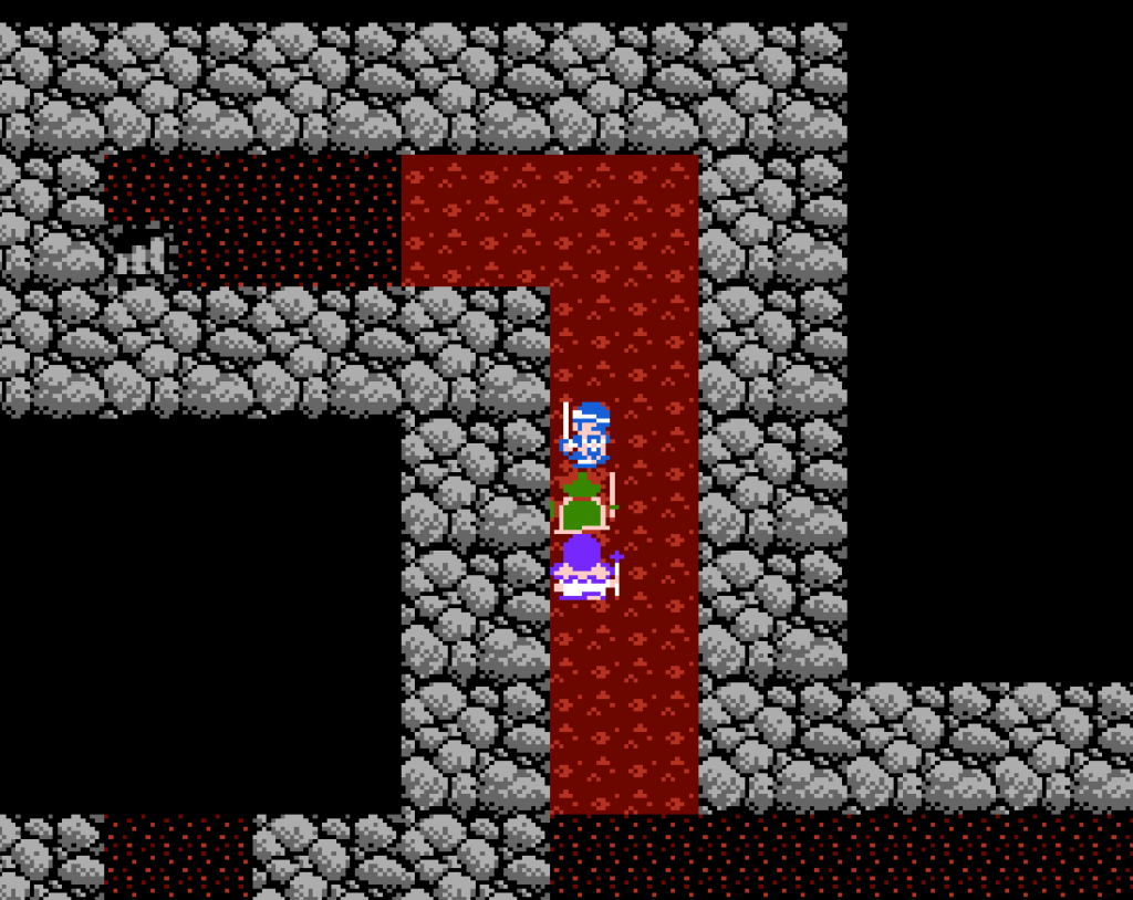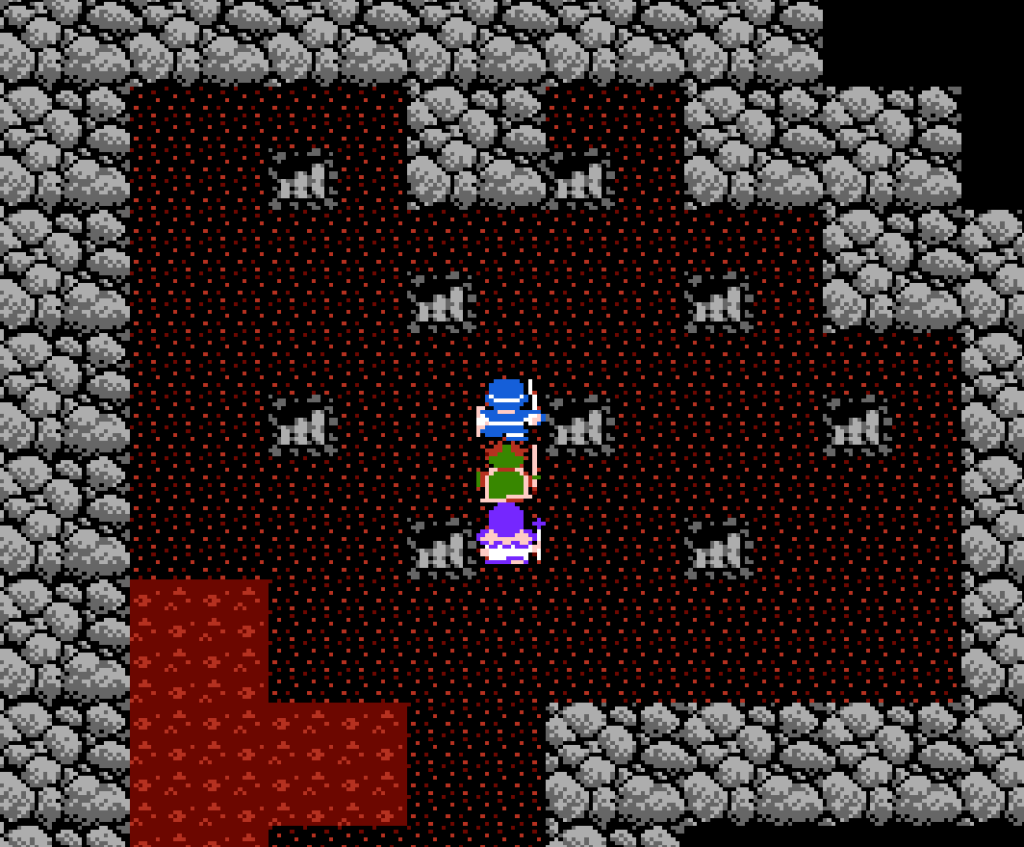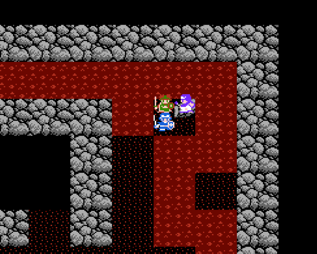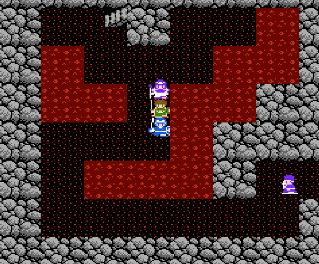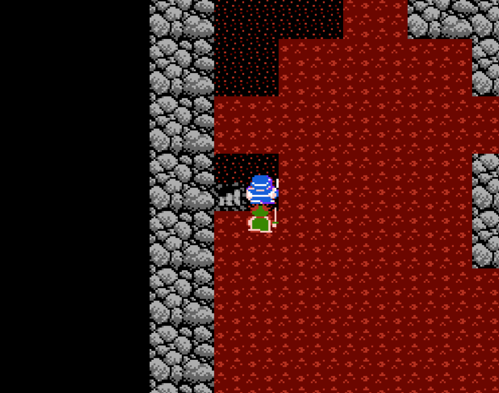 洞窟の中はマグマのダメージ床。1歩1ダメージ。しかし「みずのはごろも」を装備しているとダメージを受けない。