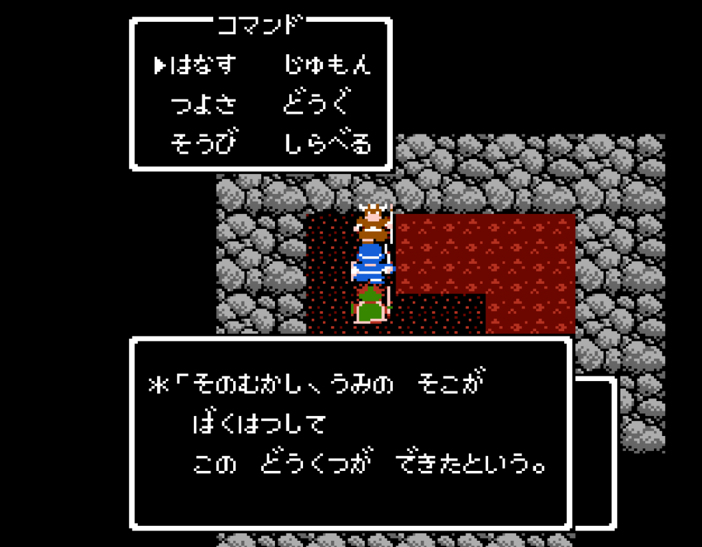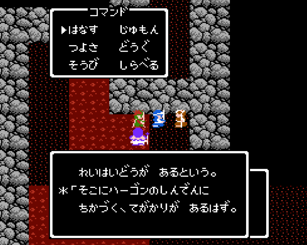 つきのかけらを手に入れたはいいが、じゃあそれをどこで使えばいいか、さっぱりわからない。ヒントはローレシア北のお告げ所で「じゃしんのぞうは うみのまんなか ふかき どうくつに ねむる!」というヒントだけ。他にあったかな?